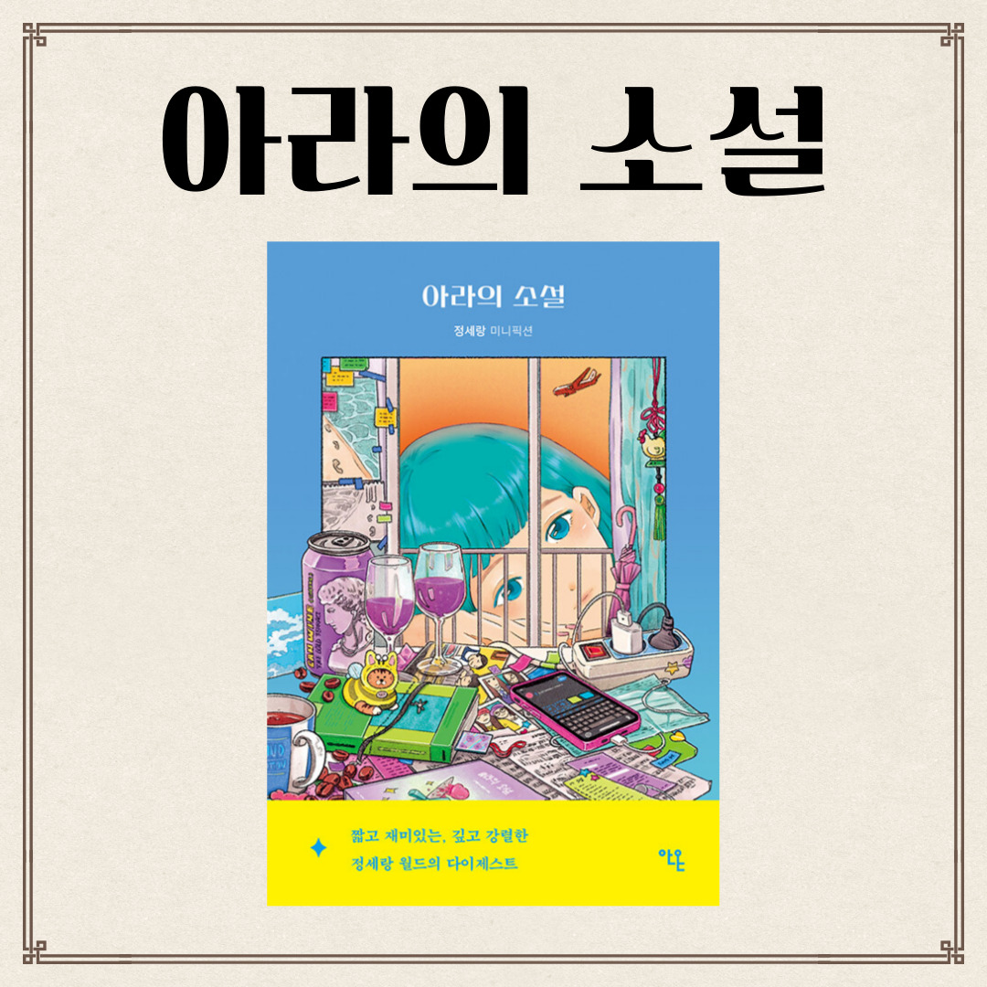 주로 장편소설을 읽기에 아직 읽은 단편소설을 많지 않지만, 어느 예능에서 김영하 작가가 자신의 단편을 일부만 교과서에 실리는 것을 거부하면서 밝힌 이유인 단편은 작가가 한 편을 다 읽었을 때 하고 싶은 말을 알 수 있다는 말을 이제야 조금은 알 수 있을 것 같다. 며칠 전 도서관에서 발견한 정세랑 작가의 미니픽션 『아라의 소설』을 읽으면서 이런 생각이 조금 더 들었다.