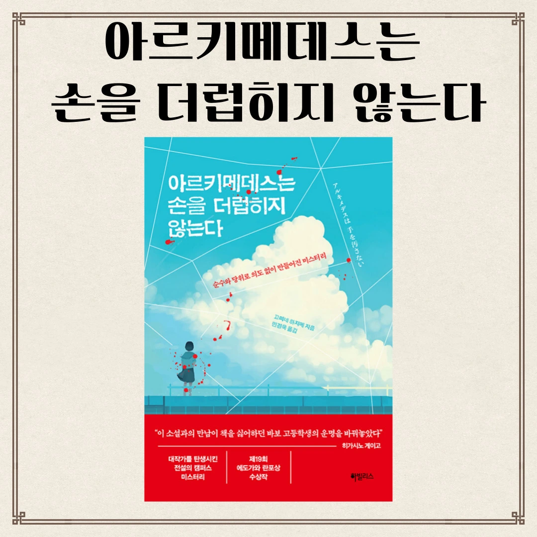그것이 바로 고미네 하지메의 『아르키메데스는 손을 더럽히지 않는다』 이다. 역자가 후기에 쓴 말처럼 히가시고 게이고가 추리 소설을 쓰겠다고 마음먹게 한 작품이기에 누군지도 모르고 읽게 된 소설이다.