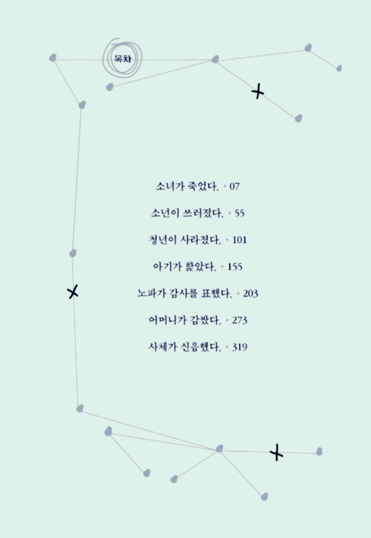 내가 하고 싶은 말은 요즘 소년들은 우리가 젊었을 때보다. 또 다쿠보쿠(일본의 근대시인) 때보다 훨씬 솔직해. 다쿠보쿠처럼 ‘꽃을 사서’라고 고상을 떨거나 ‘아내로 삼아’라며 에둘러 표현하지 않아. 자기 생각을 그대로 밝히지. 꾸미거나 숨기려고 하지 않아. 그러니깐 신문할 때도 선입견 없이 솔직하게 그들의 이야기를 들어야 수사가 엉뚱한 방향으로 가지 않아. (83쪽)