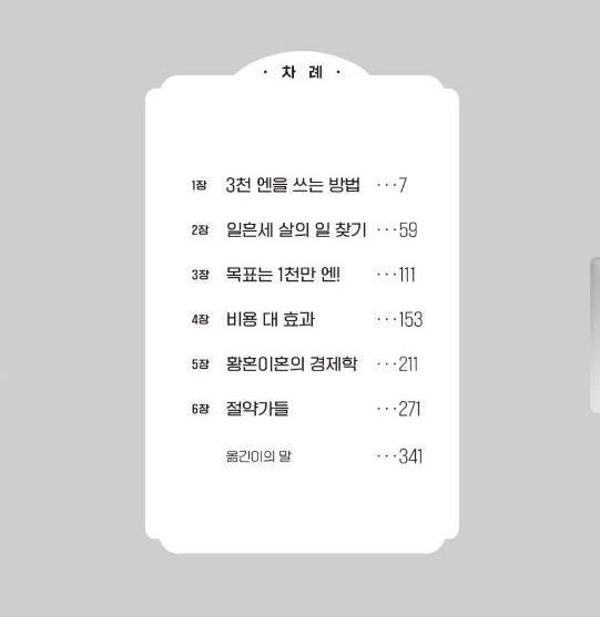 “말 그대로야. 3천 엔 정도의 소액으로 사는 것. 고르는 것. 하는 일이 쌓여서 그 사람의 인생을 만들어간다는 뜻이지.” (9쪽)