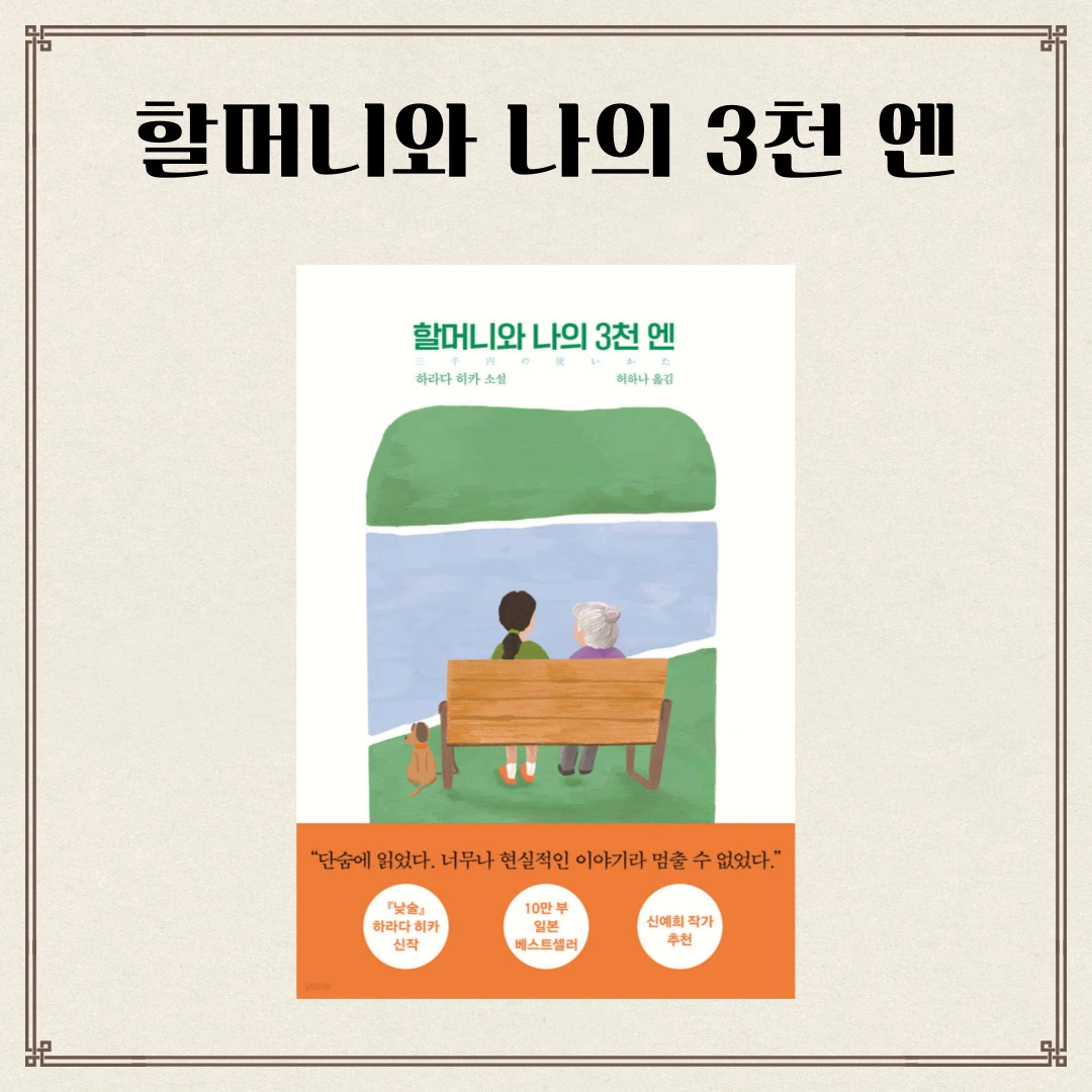 살아가면서 꼭 필요한 것 중 하나로 돈이 있을 수 있다. 물론 돈이 없다고 삶이 당장 끝나지는 않지만 최소한의 인간다움을 가지고 살기 위해서는 어느 정도는 필요한 것이 돈이다. 하라다 히카의 소설 『할머니와 나의 3천 엔』은 돈에 대한 걱정과 계획을 현대 일본을 살아가는 3대의 여성을 통해서 보여주고 있다.
