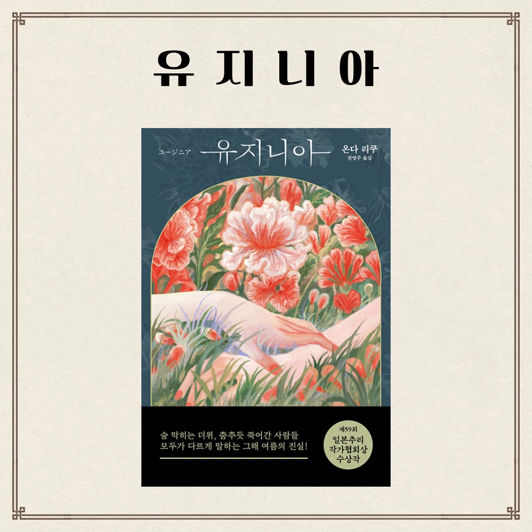 소설의 후반부로 갈수록 생각지도 못한 반전이 등장하기도 하지만 끝까지 사건의 진상에 대해서는 밝혀지지 않는다. 사건이 일어나고 그에 대한 명쾌한 해결이 미스터리의 묘미라고 생각하고 있는 나에게 소위 이런 열린 결말은 답답해서 피하는 편이지만 이상하게도 『유지니아』에서는 사건이 명쾌하게 해결되었다면 더 어울리지 않는 것 같았다. 분명 독극물로 인하여 17명이 사망하는 사건이 일어난 것은 사실이다. 그런데 시간이 지났다고는 하지만 그 사건을 각기 자신만의 방식으로 기억을 하고 있는 사람들을 통해 진실에 대한 사람의 기억에 대하여 다시 한번 생각해 볼 수 있었다.