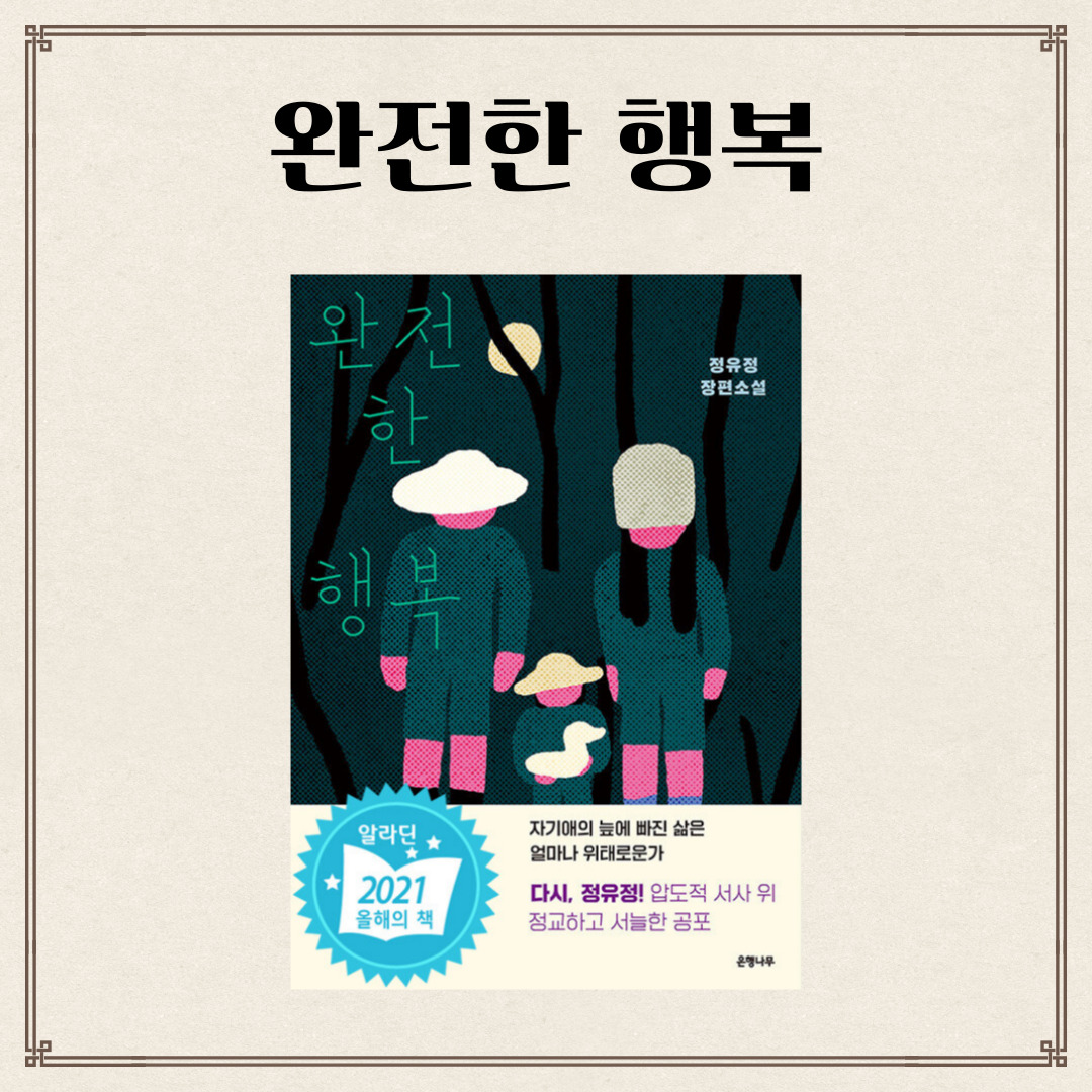 우버와 에어비앤비의 성공으로 공유경제라는 용어가 우리에게 친숙해졌다. 쉽게 말해서 부동산, 자동차 등 필요는 하지만 꼭 내가 가져야만 하는 것은 아닌 것을 빌려 쓰는 것에 대하여 거부감이 사라지고 있다는 뜻으로 풀이된다. 더불어 요즘은 당근으로 대표되는 중고시장도 활성화가 되어 소유라는 개념이 예전보다 많이 헐거워진 느낌이 든다. 정유정 작가의 『완전한 행복』의 끝 무렵 유나는 언니 재인에게 “또 내 것에 손을 댔단 말이지.”라고 중얼거린다. 대화가 아닌 스스로 결론을 내고 말하는 일종의 통보로 유나의 성정을 단적으로 보여주는 말이기에 등장인물들의 입에서 나온 수많은 대사 중에서 가장 섬뜩하게 다가왔다. 또다시 자기 것을 탐했기에 그녀에 대한 분노가 걷잡을 수 없기 커졌기에 재인을 바로 해하지 않고 그에 걸맞은 무대를 준비하려는 것 같기도 하였다.
