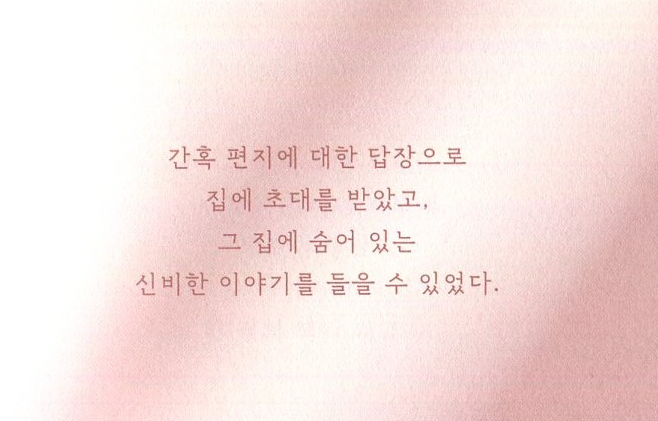 아버지에게 큰 반감을 가지고 있는 이제는 노인이 되어 버린 아들이 아버지가 남긴 메시지를 찾는 것, 어쩌면 집이라는 가족을 연결해주는 매개체가 있기에 가능한 이야기인 것 같았다. 그렇기에 모든 사건이 해결되고 나서 “모든 이들의 기억의 장소는 바로 집이었다.”라는 마지막 문장이 더욱 인상적으로 다가왔다.